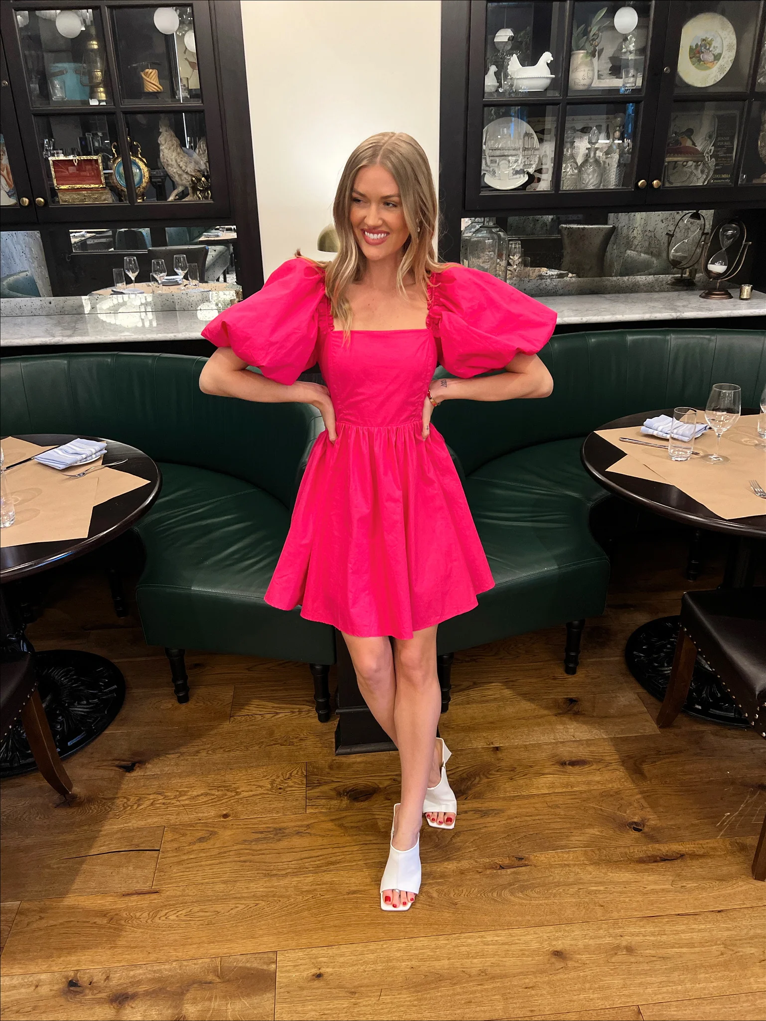 Stand out in this bright and funĀ fuchsia mini dress. We love the short puff sleeves, square neckline and a-line skirt. It is the perfect piece to add a much needed pop of color to your Spring and Summer wardrobe.