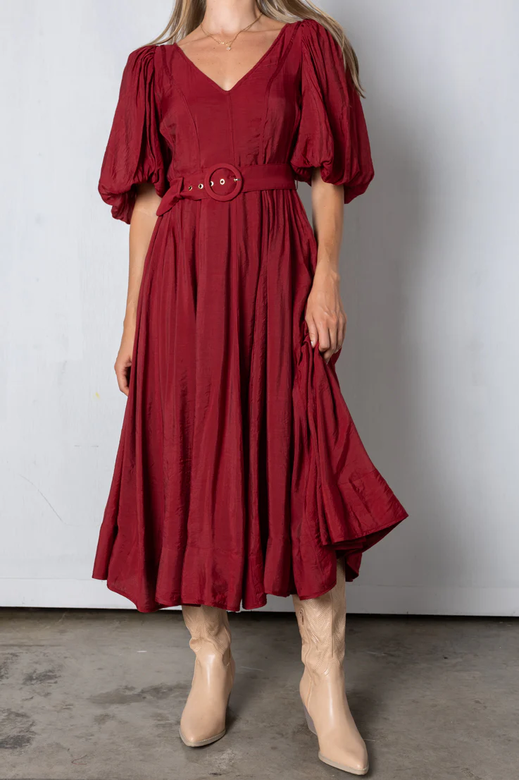 Look like fine wine, sip fine wine, wear fine wine. The Fine Wine Dress is the PERFECT dress for you! The details will stop you dead in your tracks. This dress features stunning puffed sleeves, with a deep V neck for just enough drama. Pair with your favorite high heel for a cocktail night look that's sure to become your favorite!