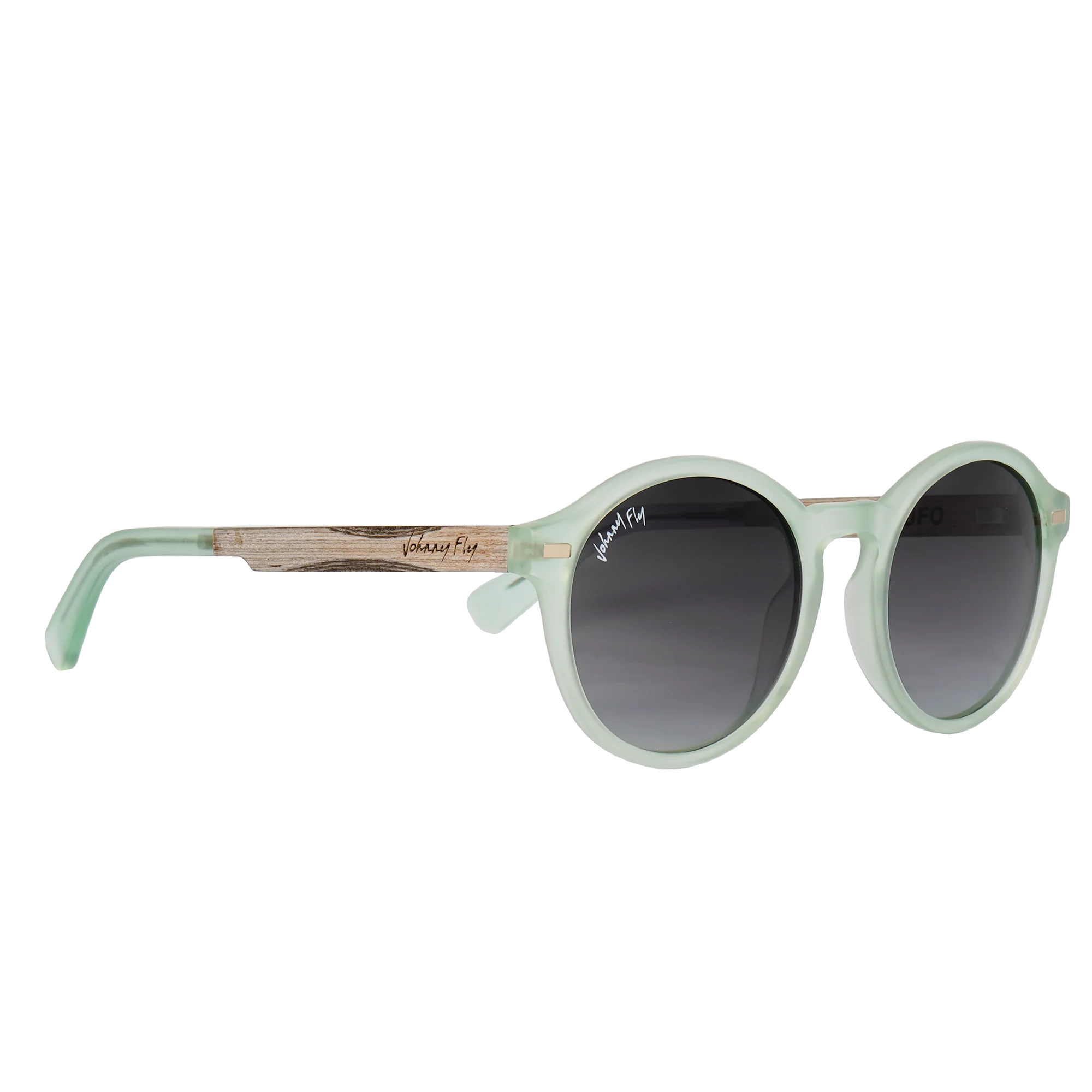 The UFO: Out of this world design. This Johnny Fly frame features a modern design while merging with the iconicĀ cotton acetate front section,Ā wooden arms,Ā spring hinges, andĀ polarized lensingĀ that make them Johnny Fly.